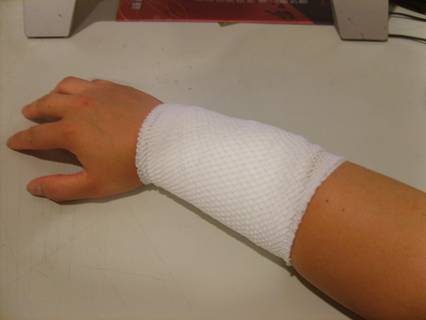 雖然冰敷完也裹了藥布