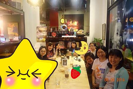 還在花蓮時就已經事先打電話預訂好位置,還跟老闆娘指定要「孫啟鳴玩真心話大冒險坐過的那張長桌」,當老闆娘得知我們是小竇的粉絲,而且人數眾多,她說:那張桌子當然非妳們莫屬囉,而且我也是小竇粉絲。哈哈,還沒見面,就已經感受到老闆娘的熱情了。