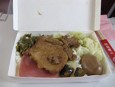 由於大家都很想吃看看鐵路便當,所以我們中午就在火車上吃,但我不太確定是不是每班列車於用餐時間都有販售鐵路便當,於是前一晚打電話詢問,但也是不清不楚,最後甜甜、袁思竇、CoCo買小七的便當,她們覺得小七的食物很好吃,而我、海綿、Maggie則買車站月台上的鐵路便當,一個排骨便當65元,打開讓我好失望,物價上漲的時代,便當大縮水,半顆滷蛋、一片火腿、一點點高麗菜、三塊脆瓜、一小撮雪裡紅、白飯也不多,跟以前吃過的根本不一樣,好想念以前的鐵路便當啊,早知道買小七的還比較好吃。吃完午餐睡個覺,準備跟PF Yeung會合,以及應付晚上的聚會囉。