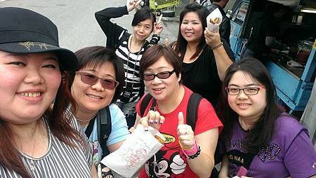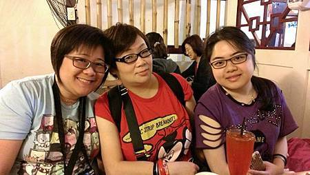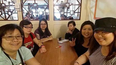 用餐完畢離去前,請店員幫我們合照,這店員酷酷的拍照完全沒喊123,就突然拍好了,請他再拍一張,還是沒喊,好吧,那就自己撐著點,不准眨眼囉,哈哈,事後看照片,還好沒人有怪表情,過關~