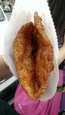 拿到了蔥油餅及飲料,我們又走回剛剛超商店門外的戶外圓桌坐下來享用,然後我要誇獎一下Maggie,她超細心超貼心的帶了一把專門剪食物的剪刀,因為我們很多東西都分著吃,就算彼此不怕對方的口水,但將食物剪開也比較方便分著吃,妳說是不是超細心?!不過那兩杯檸檬茶,還是讓我們大家「間接接吻」了,好害羞~