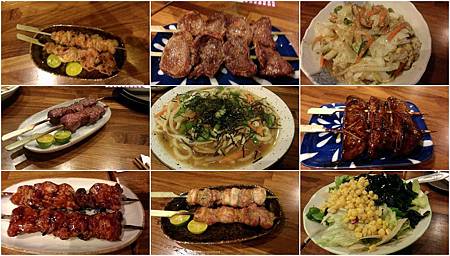 打開菜單,店內餐點選擇蠻多的,餐點價位也不貴,串燒大概在60~80元上下,看肉品而定,牛肉當然比較貴,最後我們點了和風沙拉、日式炒烏龍、現炒時蔬,雞豬牛羊串燒都各點幾盤,還點了啤酒、梅酒與沙瓦,而不會喝酒的我,當然就點汽水囉,點完餐之後,客人陸陸續續上門,沒多久就全部客滿了,我要誇獎一下,店裡出餐速度蠻快的,值得鼓勵,而且每道菜都很好吃,不會因為人多就馬虎,串燒的肉烤得剛剛好,嫩而不老,每盤串燒份量是兩串,剛好是6小塊,我們一人一塊將將好。
